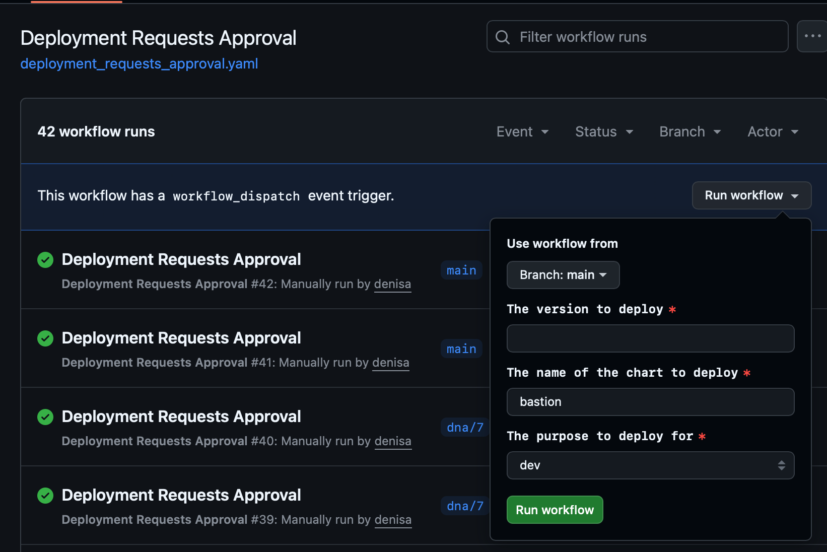 To open the gate, and allow the deployment to proceed, manually trigger the GitHub workflow Deployment Requests Approval.